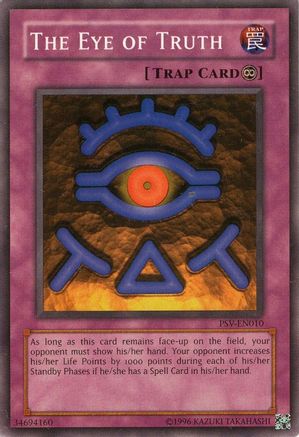 As long as this card remains face-up on the field, your opponent must show his/her hand. Your opponent increases his/her Life Points by 1000 points at each of his/her Standby Phases if he/she has a Spell Card in his/her hand.